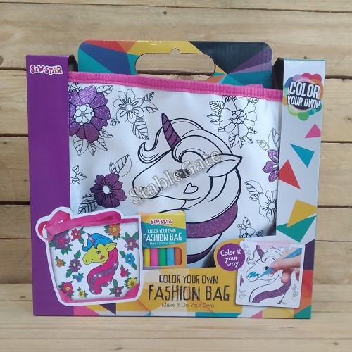 This fun and creative bag comes with a set of markers and a unicorn printed bag.