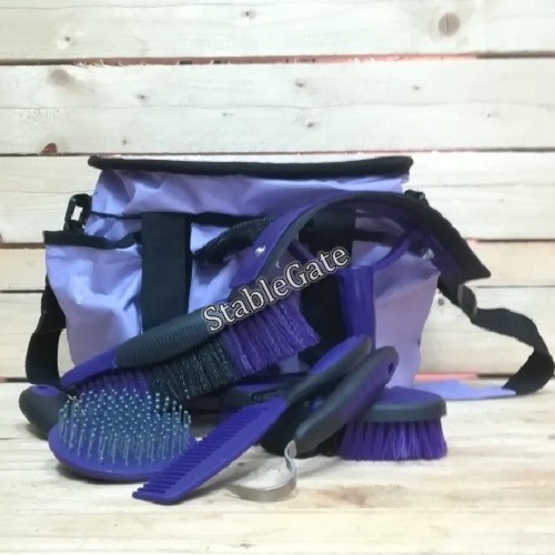 This kits includes: a Body brush, Dandy brush, Hoof pick, mane comb, round tail brush and a sweat scraper.