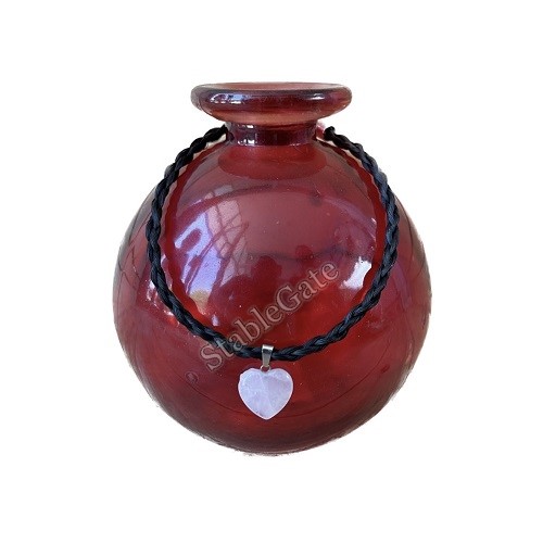 Crafted 4 strand round braided horsehair necklace, finished with a hear shaped semi-precious stone.