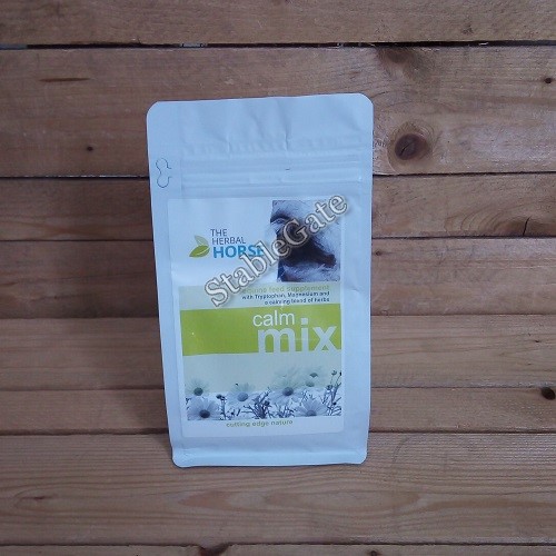 Herbal Horse Calm Mix, a natural calmer supplement with a soothing blend of herbs, Tryptophan, vitamins, magnesium 5-HTP and chamomile.