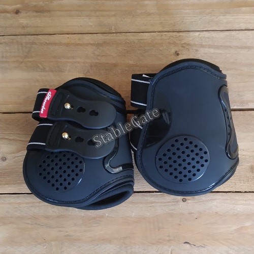 Offers a with ventilated neoprene lining, allowing for added shock absorption and protection to horses hind legs.